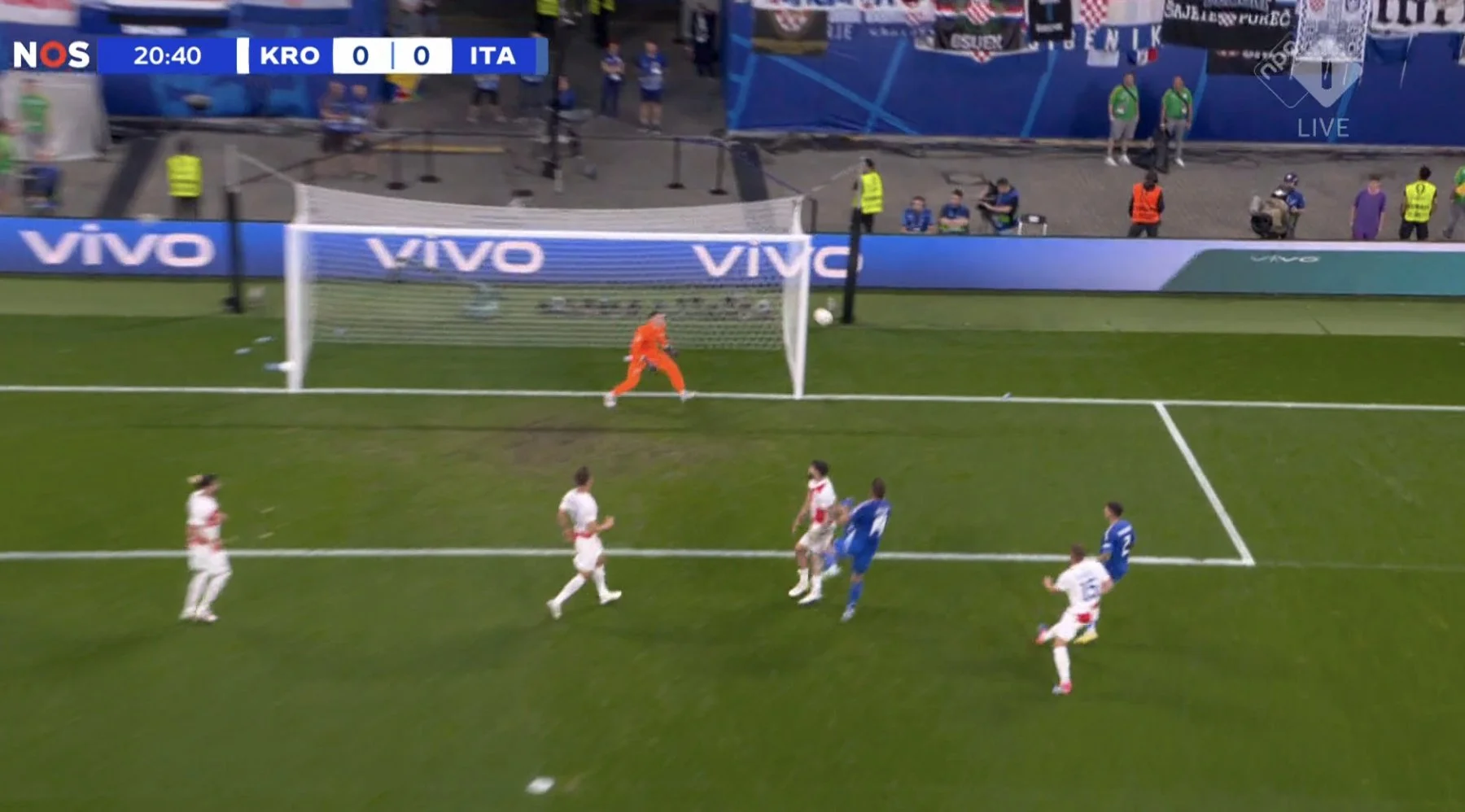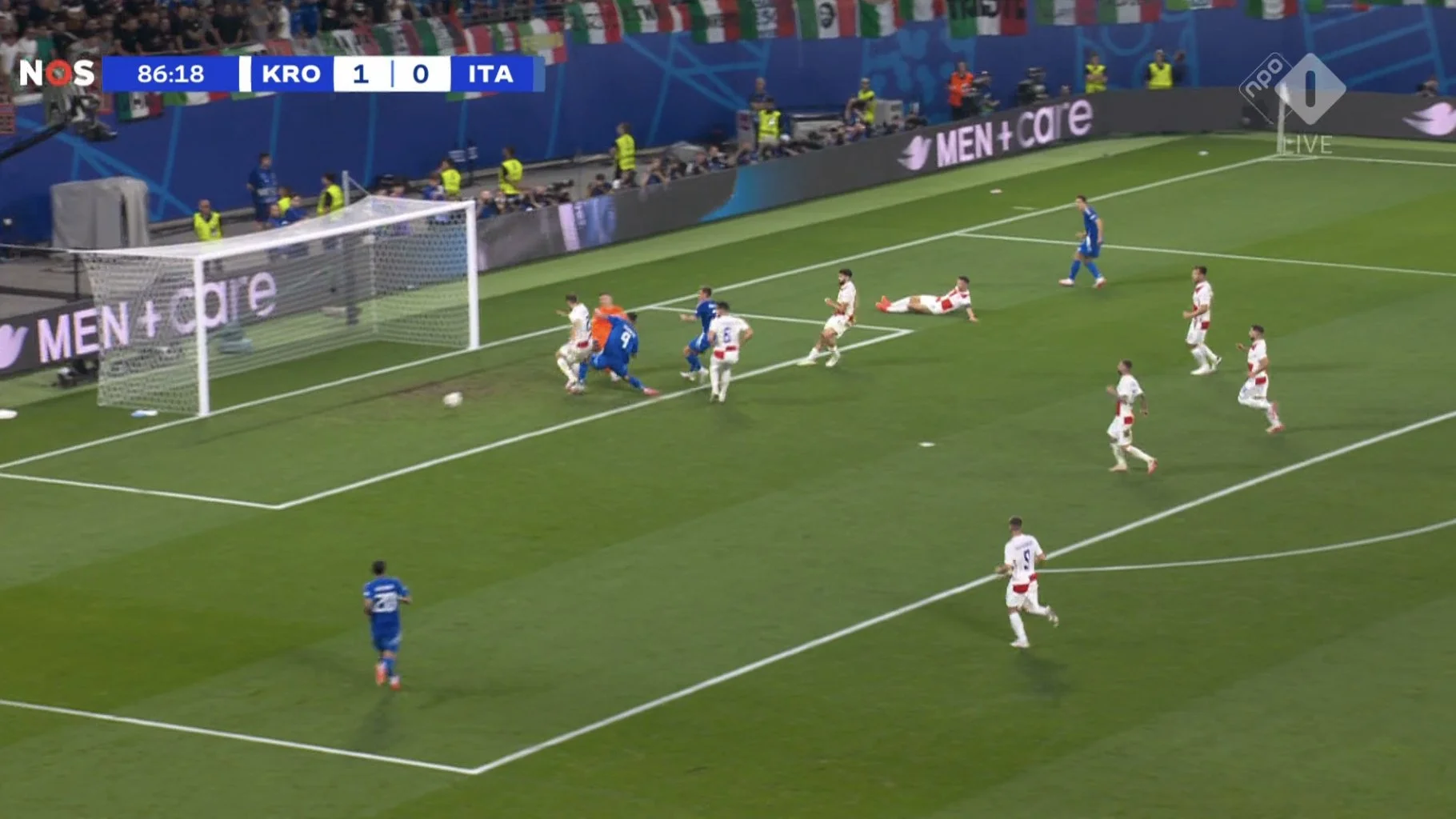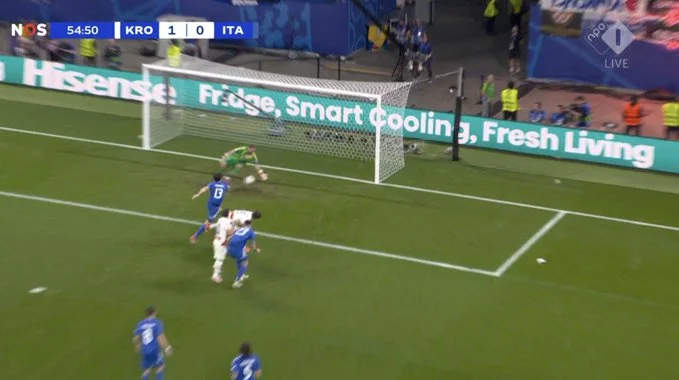 Італія виглядала безідейною та приреченою весь цей період. Підопічні Златко Даліча молилися про фінальний свисток і вже були готові святкувати – втім, на останніх секундах вперед пішов Калафйорі. Центрбек Болоньї у фірмовому стилі протягнув м'яч на дриблінгу через півполя, після чого віддав передачу на лівий кут штрафного.