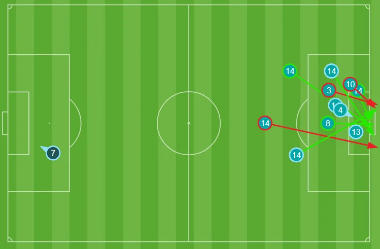 На 16-й же хвилині К'єза отримав проникний пас від Бонавентури й потужно пробив з лівого краю штрафного. Дімітрієвскі парирував, однак подальший розіграш кутового виявився фатальним для гостей. Дімарко виконав подачу на дальню стійку, а Дарміан дуже спокійно вколотив м'яч у сітку – 2:0! Це був перший з 2015 року гол Матео за збірну.