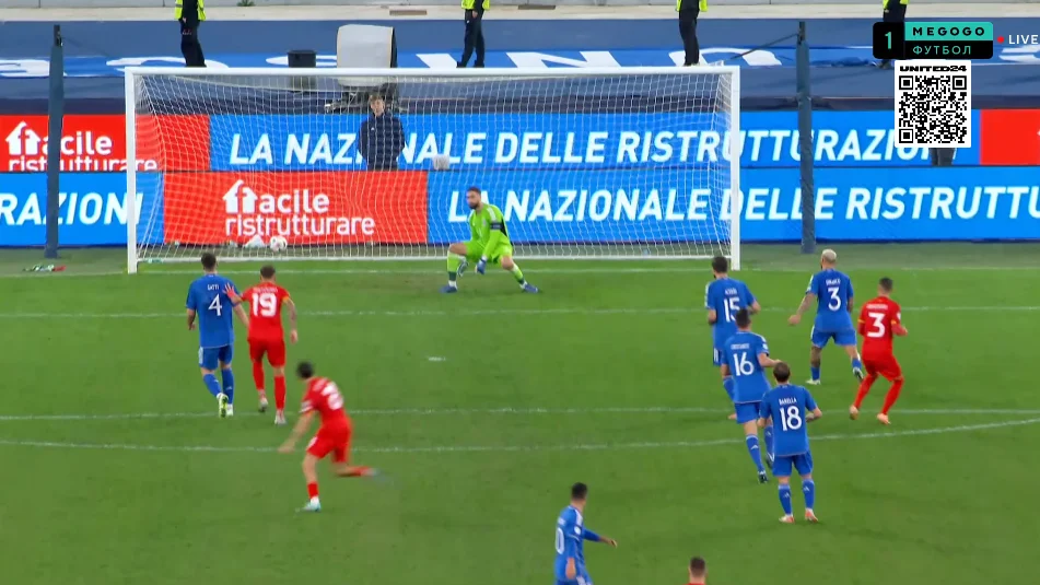 Італійці вже за дві хвилини відповіли прострілом з правого краю штрафного. Барелла завершив його ударом метрів з двох з гострого кута, однак Дімітрієвскі врятував македонців. На 58-й же Дімарко крутив з-за меж штрафного у дальню дев'ятку – голкіпер виручив і тут.