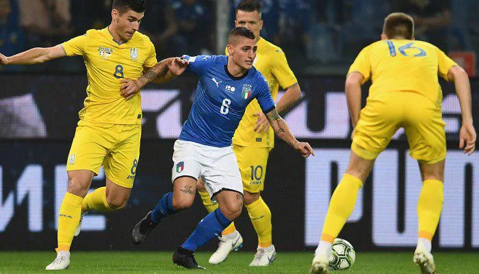 Попереду підопічні Шевченка також вигляди дуже сумно та непереконливо. "Синь-жовтим" не вдавались як позиційні атаки, так і швидкі контрвипади. Високий пресинг італійців на чолі з Марко Верраті практично унеможливлював якісний вихід нашої команди з оборони. Українці доволі часто втрачали м’яч у центрі поля та припускались невимушених помилок. Нервував навіть супертехнічний Марлос, який у дебюті матчу виконав просто жахливу поперечну передачу, яка ледь не призвела до гола. Сидорчук, який діяв у центрі поруч з Маліновським та Зінченком, також почувався не у своїй тарілці.