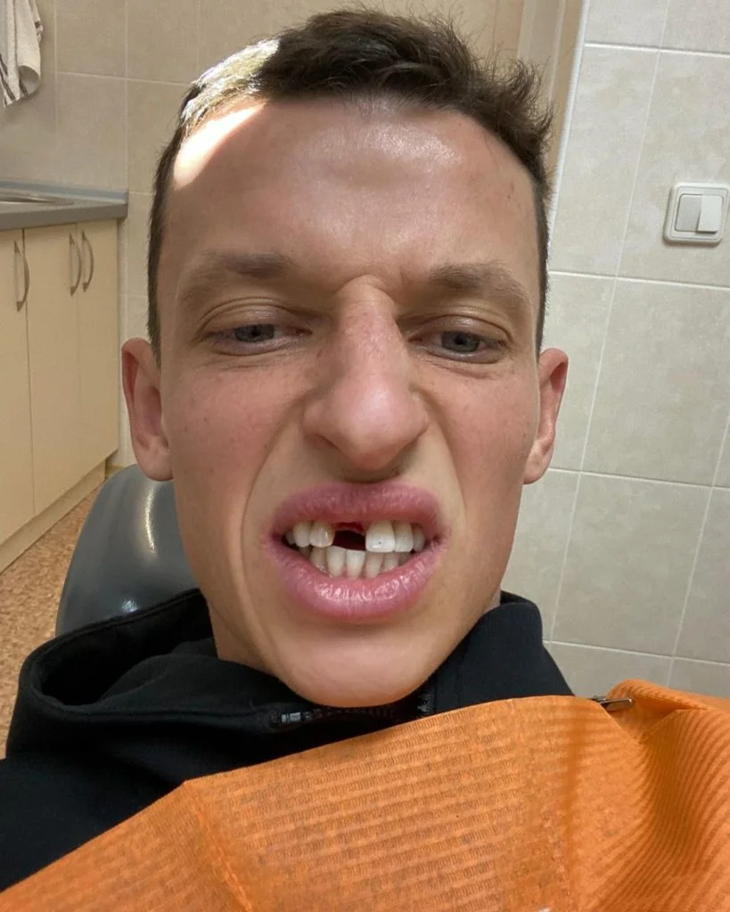 На втрату зуба звернула увагу дівчина футболіста Юля, яка на своїй сторінці у соціальній мережі Instagram написала: "Як бути, якщо ми завтра йдемо в РАЦС, а Дімі у грі вибили зуб? Зубна фея вирішила прийти під час матчу. Тільки у нас таке могло трапитися. Напевно, подумаю, що відповісти під час розписки".