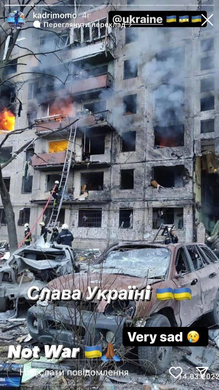 Кадірі у своєму Instagram виклав світлину одного з багатоповерхових будинків, які постраждали від нападу орків зі Сходу.
