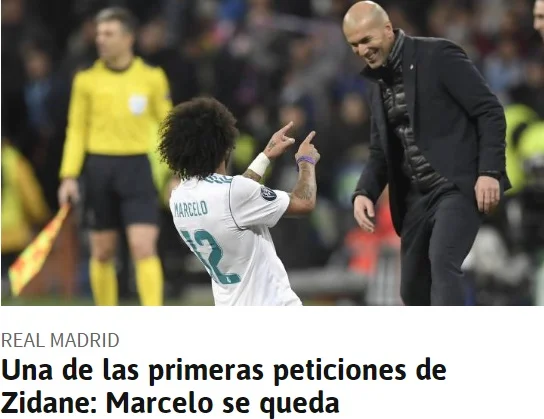 Недоторканність Марсело, який проводить просто жалюгідний сезон, програвши конкуренцію молодому Регілону, стала однією з перших петицій Зідана під час перемовин з Пересом, переконує AS. Француз прагне залишити бразильця у складі на наступний сезон, попри невдоволення його грою з боку фанів і керівництва клубу. Цього тижня новий-старий керманич Реала проведе з Марсело особисту зустріч, що повинно стати першим кроком до "повернення" кучерявого.