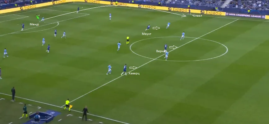 Окремо хочеться зупинитися на голі Хаверца. Вирішальну у матчі комбінацію почав Менді. Воротар Челсі віддав чудову довгу передачу на Чілвела. Той у один дотик загострив ситуацію, створивши фазовий простір, та обрізав більшу частину гравців команди суперника.