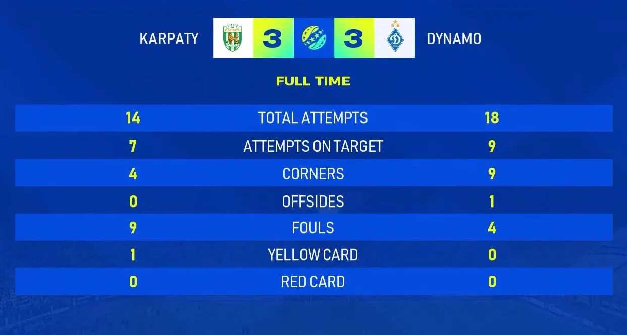 Карпати й Динамо зіграли внічию (3:3) у 7 турі чемпіонату України. Рахунок та огляд матчу – на "Футбол 24".