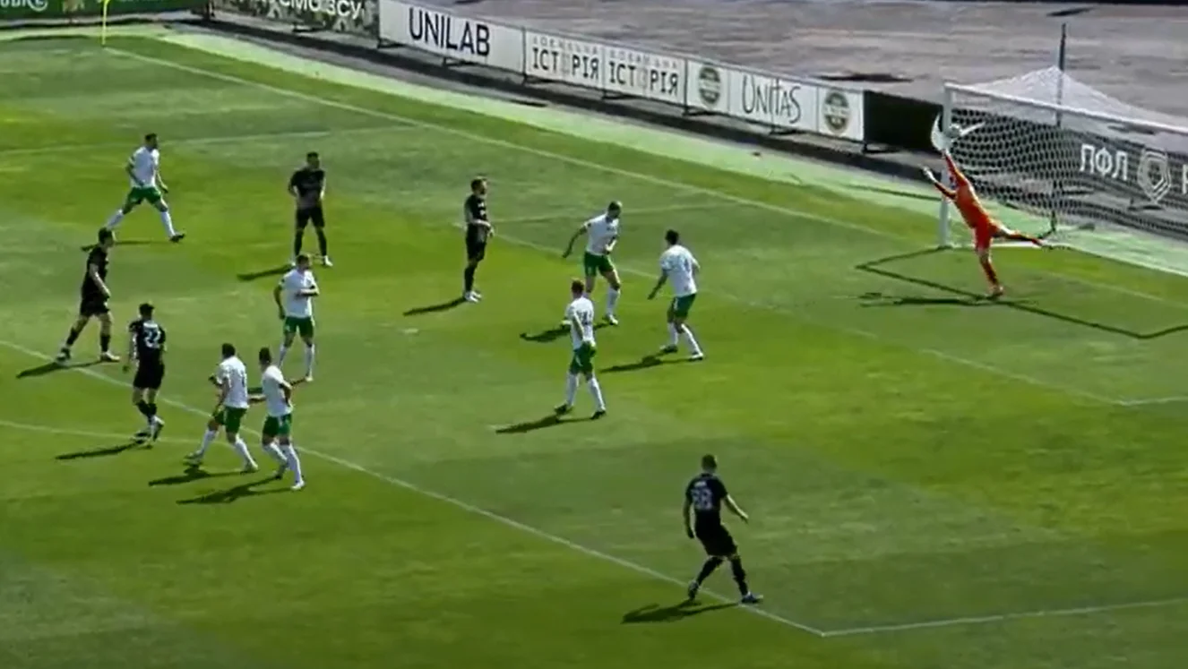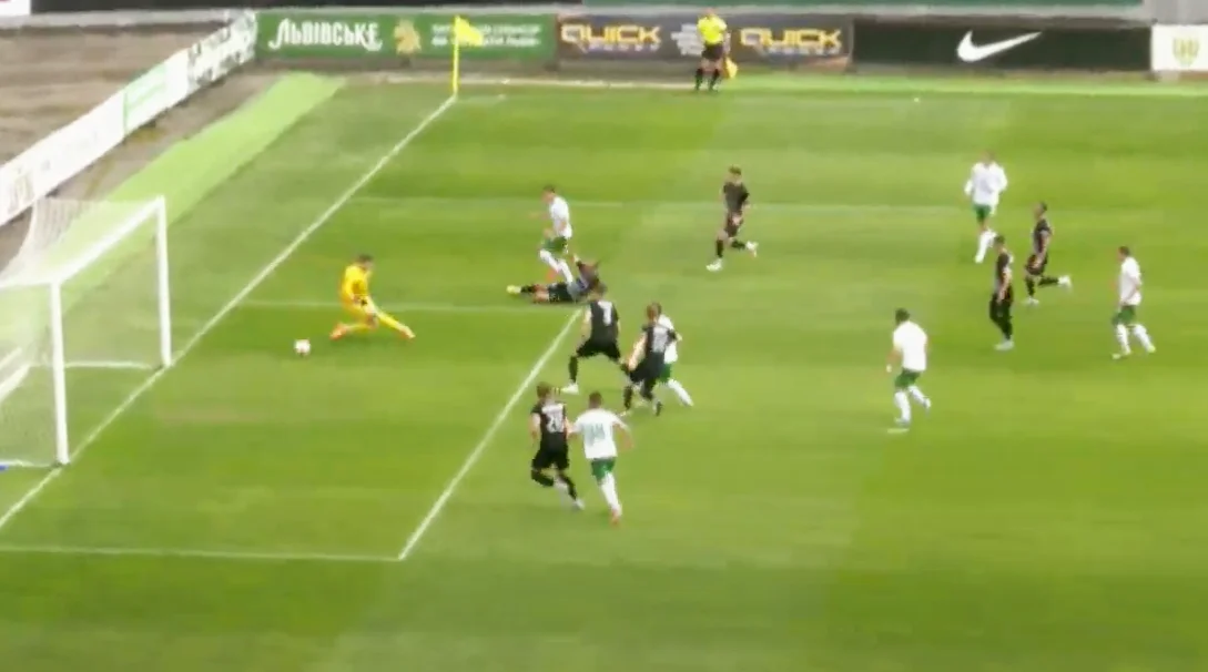 Мишенко в середині тайму мав шанс скоротити відставання, але після потужного удару м'яч пролетів повз ліву стійку.