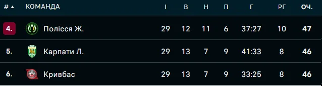 Для Карпат настала вирішальна мить у чемпіонаті. Львів'яни можуть прорватись до Ліги конференцій у першому ж сезоні після повернення в еліту. Прямо зараз "леви" мають рівність з Кривбасом за очками (по 46), випереджаючи криворіжців за статистикою особистих зустрічей – а останнє місце в зоні єврокубків тримає Полісся, у якого на один заліковий бал більше.