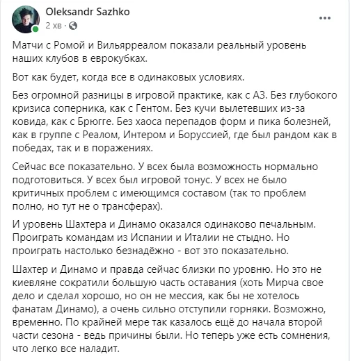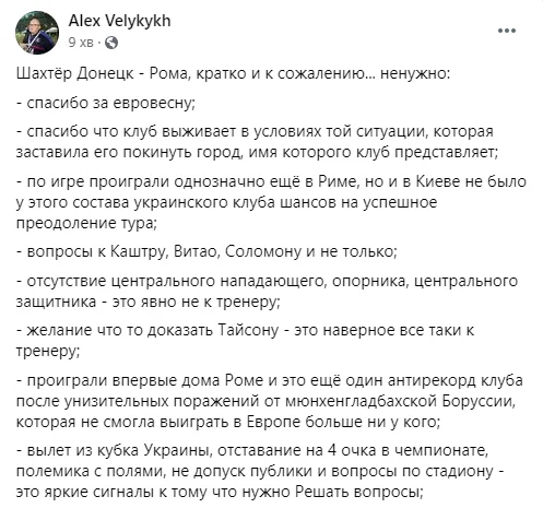 Журналіст Олег Барков у своєму Telegram детально розписав ключові епізоди другої поразки Шахтаря.