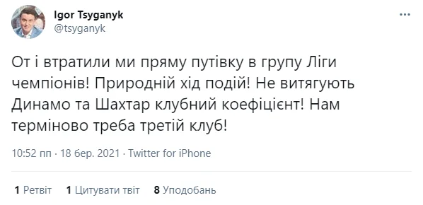 Ігор Циганик робить висновок – наш провал є закономірним.