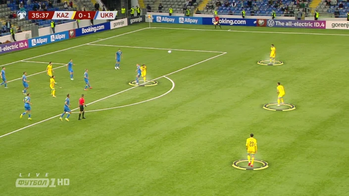 Насторожує кількість втрат у Сидорчука і Миколенка (по 11 на брата, найгірший показник за тайм з відривом). Казахи миттєво конвертують будь-який шанс в удари і здається, що біля наших воріт стабільно дуже і дуже гаряче. Утім, загалом все досить спокійно. За ударами з меж штрафного, а звідти забити шансів найбільше, 8:1 на користь України. Казахстан дуже поспішає, іноді аж занадто. Хаотичний футбол може створити проблеми гостям, однак після першого тайму більше шкода втрачених моментів у стартові 25 хвилин. Це згодом збірна взяла паузу, яка відверто затягнулася, а так гру можна було завершувати дуже швидко.
