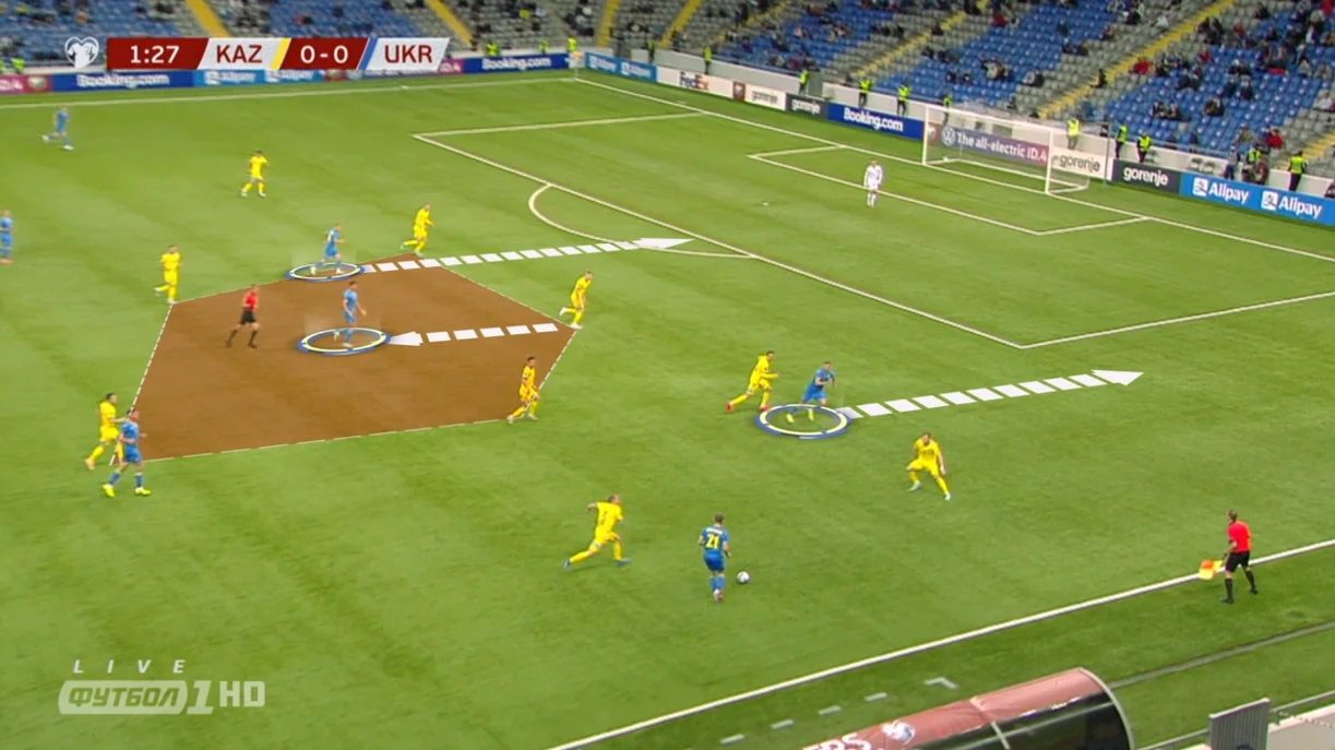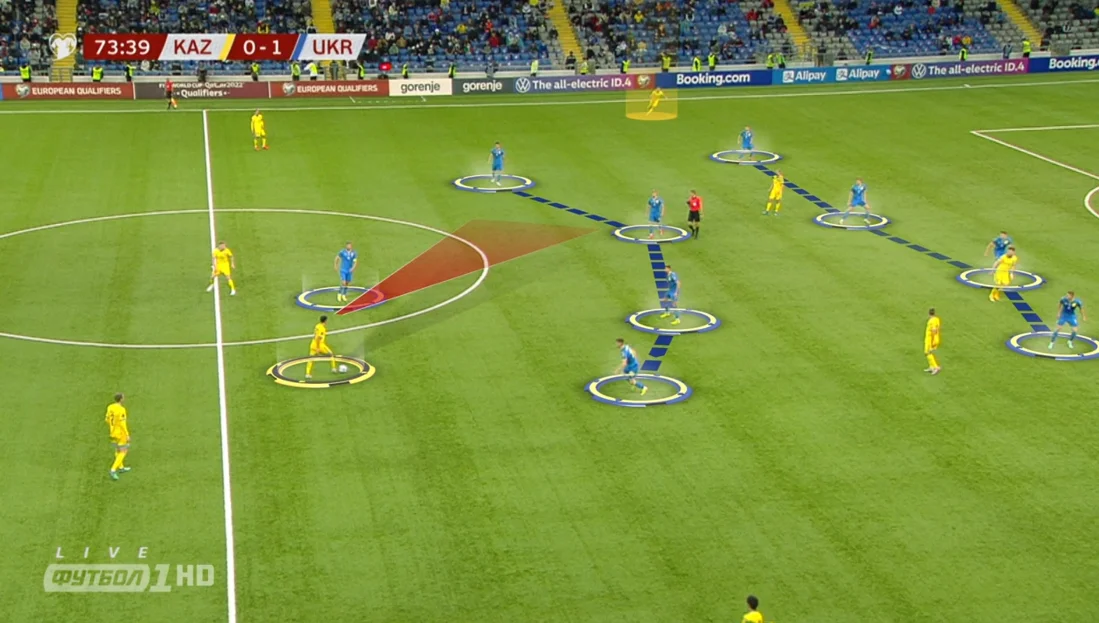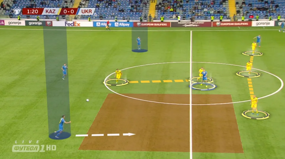 Не вистачало балансу між лініями. Моментами проглядались шалені розриви між атакувальною групою і захисною. Настільки загравались в нападі, що ніби самі запрошували казахів уперед, відкриваючи не одні ворота. Відчутне явне і доволі успішне перевантаження на лівому фланзі, тоді як праворуч найбільше страждала оборона. Петраков показав готовність до швидких кадрових рішень (із заміною Буяльського здалося, що навіть поквапився) і тактичної гнучкості – не наполягав тільки на грі в 5 захисників, приголомшив добротним пресингом, якого, утім, вистачило лише на пів години. Вимальовувалися гібридні схеми: і 3-5-2, і 3-4-3, і щось схоже на 4-4-2. За контактами з м'ячем у штрафному 47:6 – божевільна перевага українців. І дуже шкода, що команда нового тренера цю вистраждану перемогу так беззубо віддала.