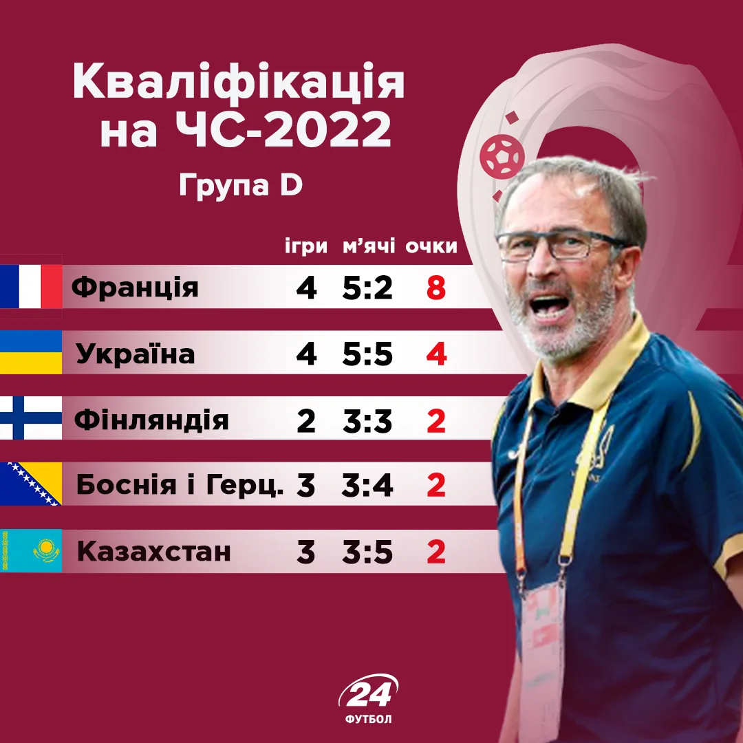 Казахстан навіть з новим тренером, який поставив значно складніший для суперників футбол, програв 0:2 Франції і 0:4 Північній Македонії. Непоганий зубастий середнячок, класний дальній пас у центрі поля, шалений характер, дивовижний голкіпер, але не більше. Не віриться, що боснійці чи фіни повторять наші помилки хоча б на 50%. Тим не менше шанси є і вони не такі пропащі. Для цього не потрібно навіть фантазувати про перемогу над Францією, хоча боротися за очки тепер потрібно з подвійною віддачею. Обігруйте всіх конкурентів – 3 перемоги дадуть мінімум 13 очок, може й вистачити для плей-офф. Чому б і ні, всі суперники приблизно одного рівня, крім фаворита та аутсайдера. А Україна останнім часом показала, що здатна дивувати героїзмом там, де вже ніхто не чекає нічого доброго.