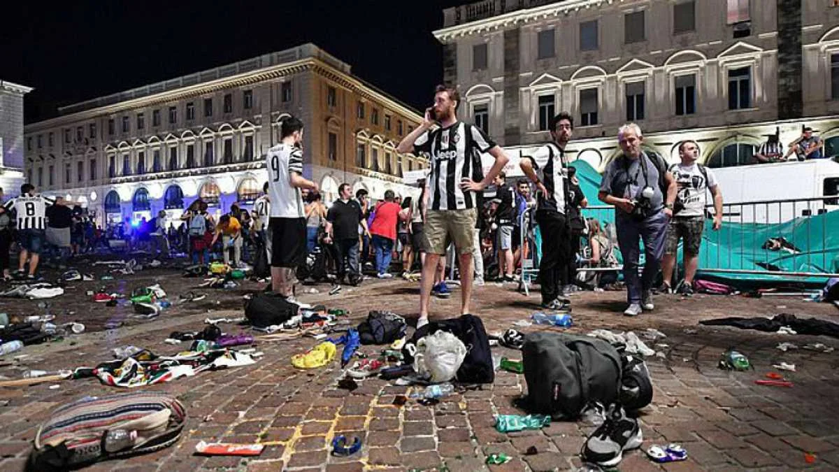 Під час перегляду гри хлопець кинув у натовп петарду і крикнув "Бомба!". Це спричинило хаос і тисняву. Спершу повідомлялось про 200 постраждалих, згодом число зросло до 600. Наразі кількість постраждалих у тисняві сягнула 1000 чоловік. 2 людини перебувають у важкому стані, повідомляє Sky TG24.