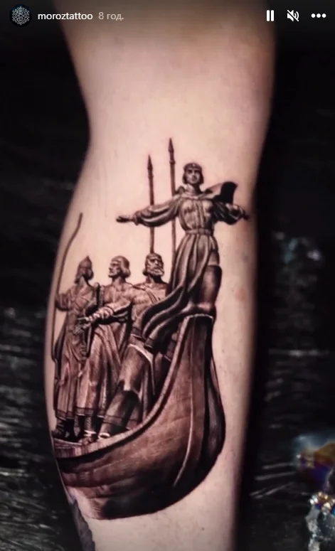 Воротар Динамо Денис Бойко зробив собі нове татуювання. 35-річний футболіст набив на лівій нозі зображення пам'ятника засновників Києва – Кия, Щека, Хорива та їхньої сестри Либідь.
