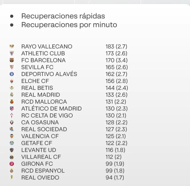 Також Хетафе у хвості Прімери за кількістю повернень і головне – швидких повернень м’яча. "Містяни" не вмикають контрпресинг, а після втрати вишиковують масовані оборонні редути. Вони не забирають м’яч, а захищають ворота.