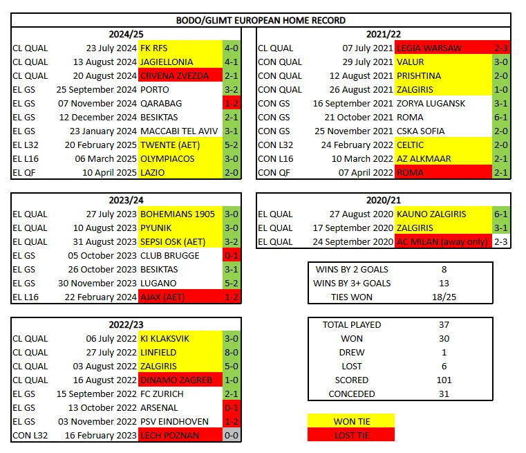 Арктична паніка перед матчем-відповіддю 1/2 фіналу ЛЄ проти Тоттенхема охопила навіть Лондон і британські ЗМІ. Не дивно, адже вони приголомшували вже чимало серйозних опонентів. Порту, Олімпіакос, Бешикташ, Рома, Селтік, Лаціо, Олімпіакос – ці норвежці перемагали не одного гранда своїх чемпіонатів. Крім згаданих іменитих суперників, розправлялися і з луганською Зорею. Єврокубкова історія Буде-Глімт не дуже довга, але вже доволі яскрава. Чемпіонат Норвегії проводять за схемою, що змушує клуб, який у перекладі звучить як "Спалах" чи "Блискавка", 22 місяці поспіль проводитиме офіційні матчі аж до січня 2026 року. Це щонайменше.