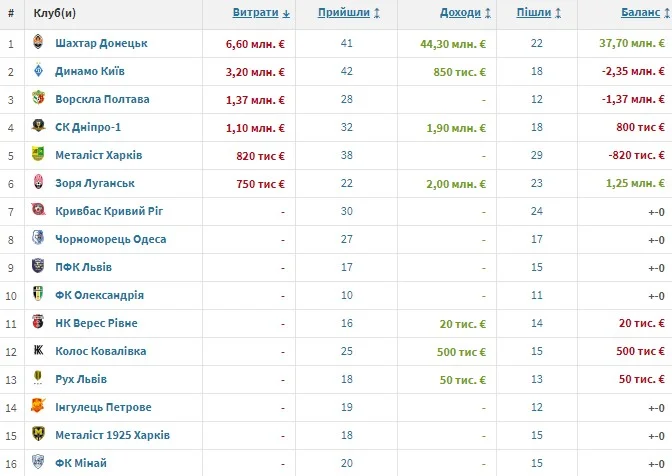 Динамо заробило 850 тисяч євро, а виклало на підсилення 3,2 млн. У киян найбільший підсумковий мінус. СК Дніпро-1 придбав гравців на суму 1,1 млн євро, а продав на 1,9 млн. Зоря отримала від трансферів 2 мільйони євро, витративши при цьому 750 тисяч.