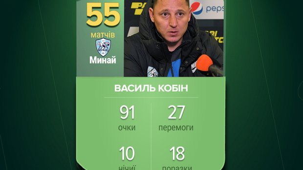 Нагадаємо, 35-річний фахівець очолив команду у 2019-му. За цей час Минай провів 55 матчів, виграв Першу лігу сезону 2019/20, вийшов у півфінал Кубка України, дебютував в УПЛ. Хто замінить Кобіна на посаді головного тренера, буде оголошено пізніше.