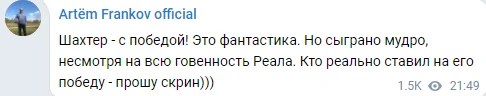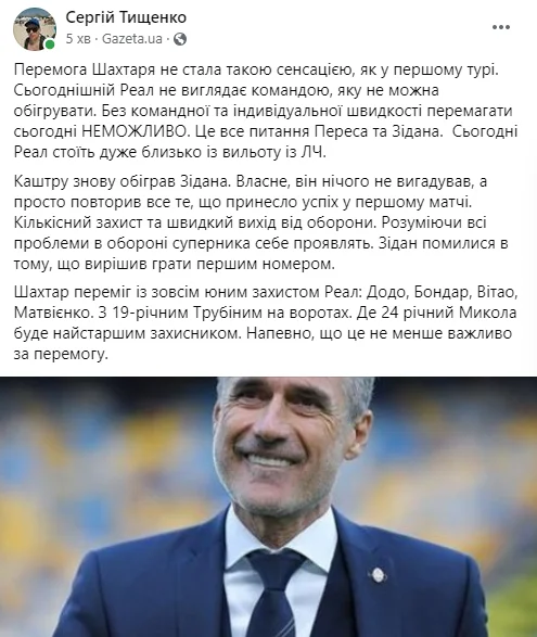 "Футбол 24" зібрав першу реакцію експертів та відомих уболівальників за мотивами матчу 5-го туру Ліги чемпіонів Шахтар – Реал (2:0).