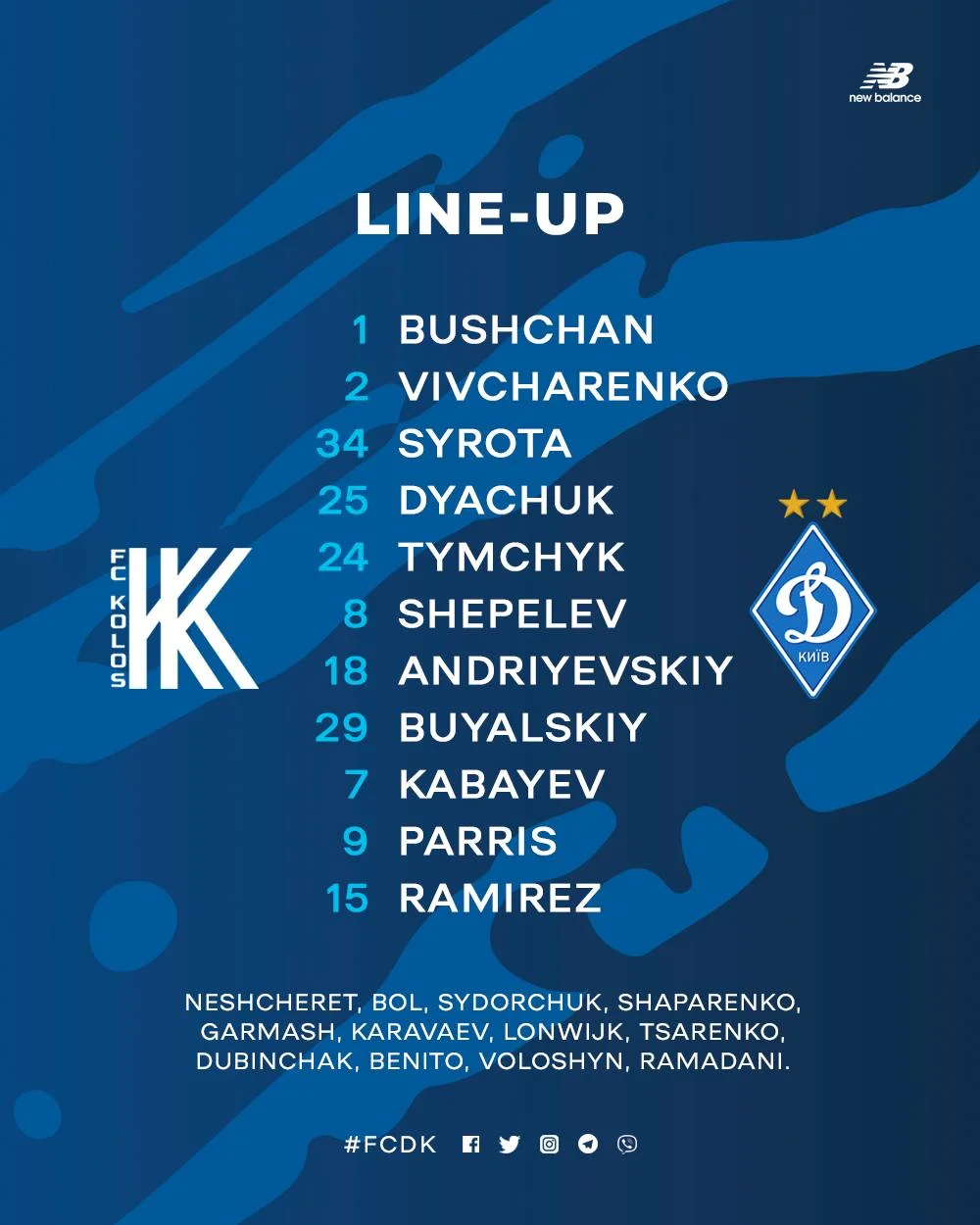 Динамо: Бущан – Тимчик, Сирота, Дячук, Вівчаренко – Шепелєв, Андрієвський – Перріс, Буяльський, Кабаєв – Рамірес