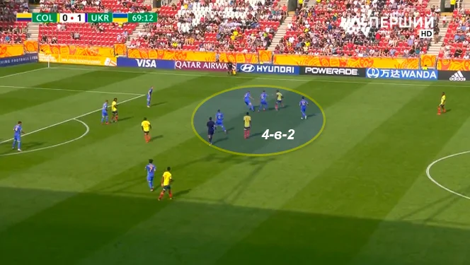 В обороні Україна також відпрацювала сильно. "Синьо-жовті" традиційно відмовилися від активного пресингу на чужій половині поля, залишаючи задню лінію суперника без систематичного тиску. Центрбеки Колумбії теоретично мали свободу в оперативних діях, але по факту вони могли грати лише від лонгболів на фланги. В центрі варіанти передач старалися перекривати, звалюючи атаки "лос кафетерос" до бокової лінії.
