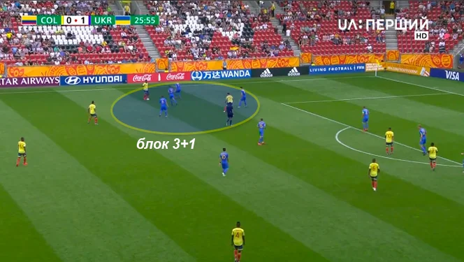 У колумбійців не було майстра тонких передач у першій фазі атаки, тому дрібні помилки українців рідко завершувались значним просуванням м'яча. Втім, навіть якщо б паси у середню зону проходили частіше, наші футболісти з великою долею ймовірності цього б не відчули через іншу фішку – насичення зони м'яча.