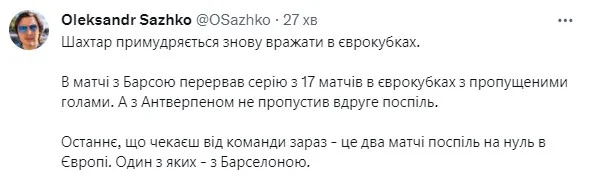 На противагу – Олександр Сажко, оглядач Трибуни, задоволений абсолютно всім. Тут вам і респект команді, і реверанс клубному менеджменту "гірників", і навіть згадка про легендарного співкоментатора MEGOGO.