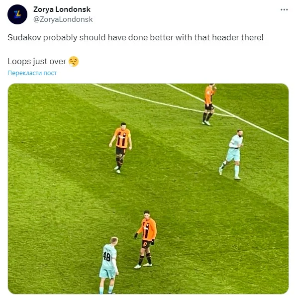 Всюдисущий Ендрю Тодос (Zorya Londonsk) на власні очі бачив поєдинок і, зокрема, прокоментував пам'ятний промах у першому таймі. "Судаков повинен був краще пробити головою", – вважає футбольний мандрівник.