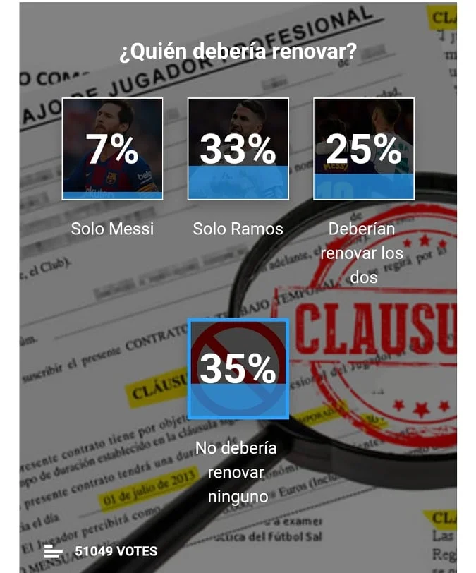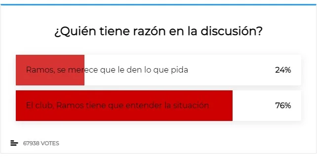 Прощання з легендою схожого калібру вимагає "ратифікації" фанатів. Але й тут Серхіо не знаходить підтримки. Принаймні опитування Marca змусить його сильно замислитись, чи вартувало взагалі розпочинати війну з клубом. 76% із майже 70-ти тисяч респондентів підтримують керівництво, і лише 24% – вважають, що апетити вожака потрібно задовольнити.