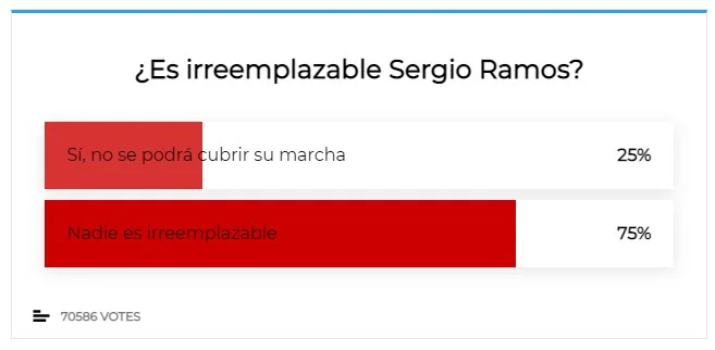 Напередодні Чемпіонату світу 2022 Рамосу потрібно залишатися на радарах Луїса Енріке, тому іспанські фани практично не сумніваються, що він обрав би європейський клуб. ПСЖ – ідеальний варіант, на думку аудиторії Marca. Французький напрямок лідирує з величезним відривом – 56% із 68-ми тисяч опитаних. МЛС (15%) та Ювентус (14%) катастрофічно відстають, а опція Сіті чомусь взагалі не розглядається, хоча Пеп і Рамос під одним дахом – це вибухова суміш, погодьтесь. Насамкінець резонансна відповідь на питання, хто повинен продовжити контракт – Рамос чи Мессі. 35% респондентів прогнали б обох. Легенди вже не в моді?
