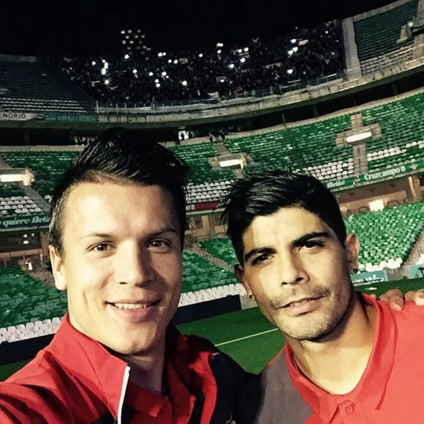 Український півзахисник зробив селфі з Банегою на фоні гостьового сектору "Беніто Вільямарін", де ще були присутні уболівальники "рохібланкос".