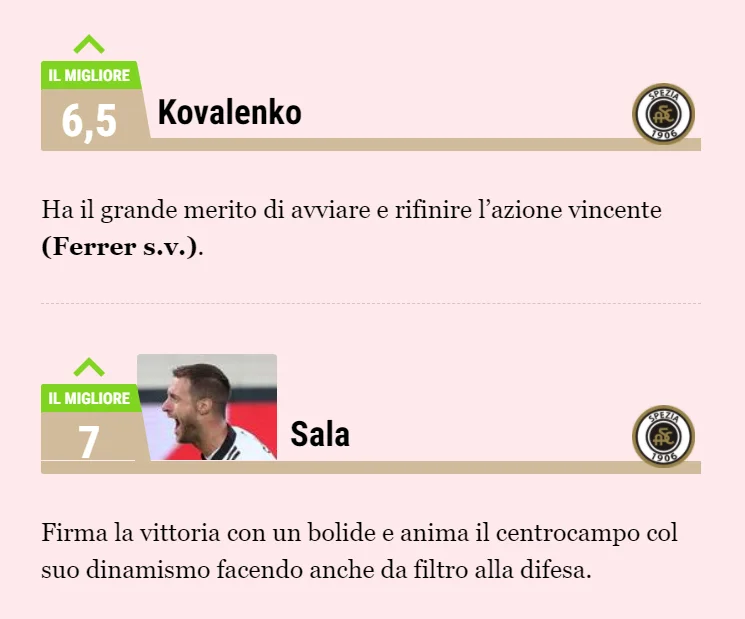 Коваленко став найкращим у переможному матчі Спеції – українець у співавторах рідкісного досягнення