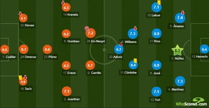Авторитетний WhoScored також вважає, що Кравець награв на 6.3 бали. Однак, крім Сіоваса і Таріна, гірше був відзначений ще один гравець у складі "пепінеро" – вихованець Барселони Жерар Гумбау, який провалювався в опорній зоні.
