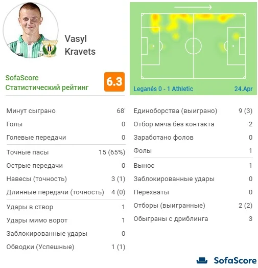Аналітичний портал SofaScore оцінив дії українського захисника другим найнижчим балом серед гравців Леганеса – 6.3. Менше отримали лише Сіовас, який був замінений ще у перерві, та правий центрбек Родріго Тарін. Обоє провалились на стандарті, коли був забитий єдиний гол у матчі. До слова, у поточному сезоні Ла Ліги Атлетік забивав після подач з кутових лише Леганесу. У поєдинку першого кола баски також відзначились у воротах Куельяра після аналогічного стандарту.