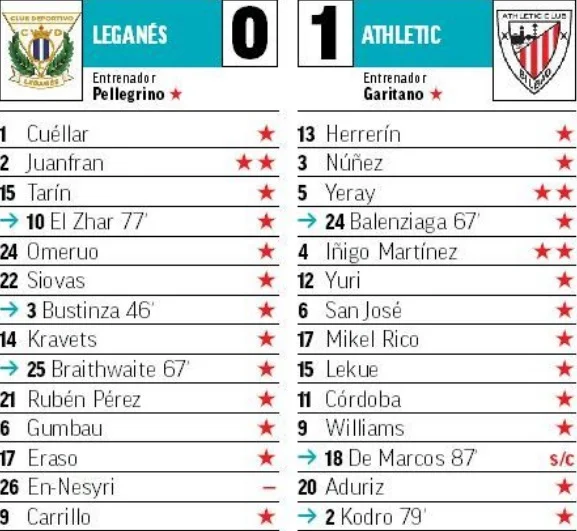 Мадридська Marca відзначає намагання екс-гравця Карпат та Луго підтримувати атаку, однак його оцінка така ж низька, як у решти футболістів Леганеса. З "сірої маси" виділяється лише 30-річний Хуанфран, який більш-менш надійно відзахищався проти Берчіче і Кордоби.