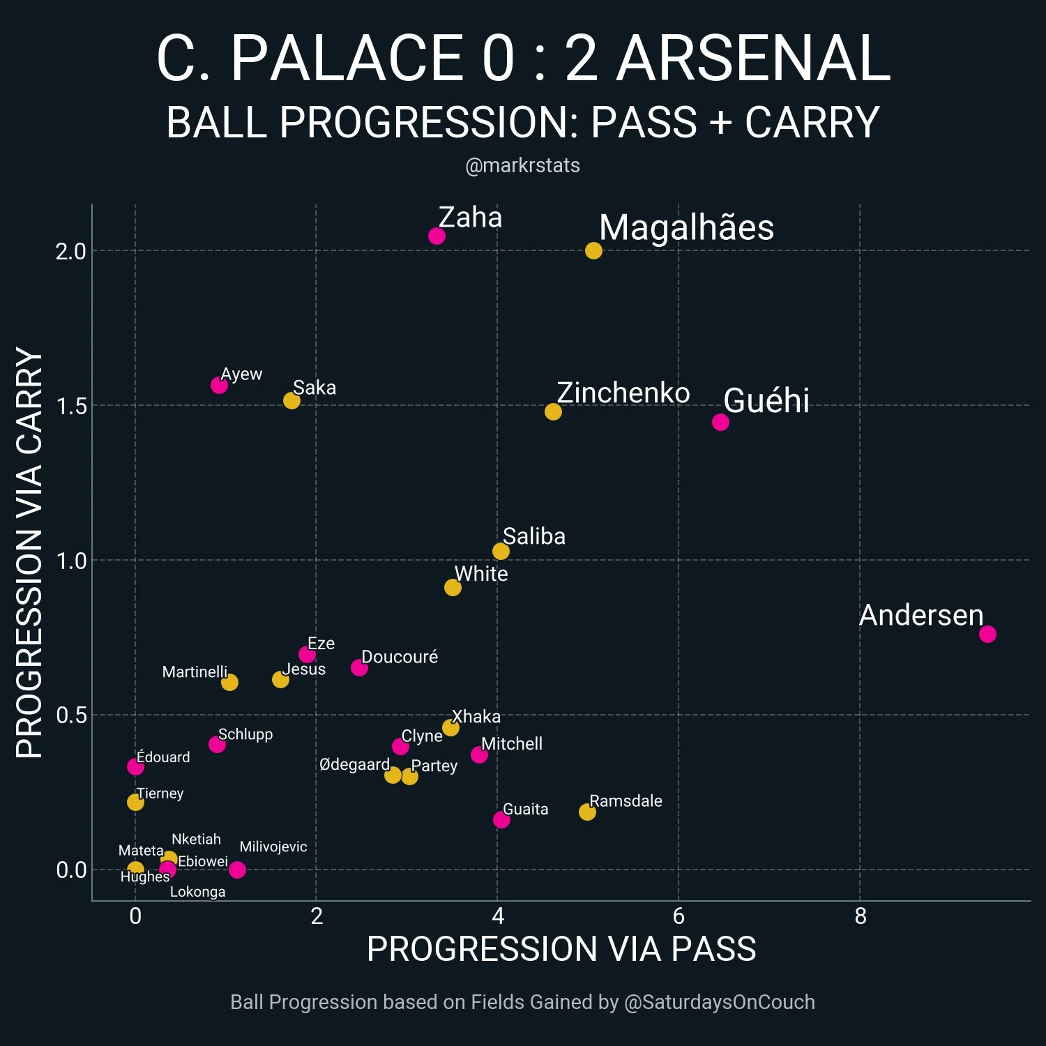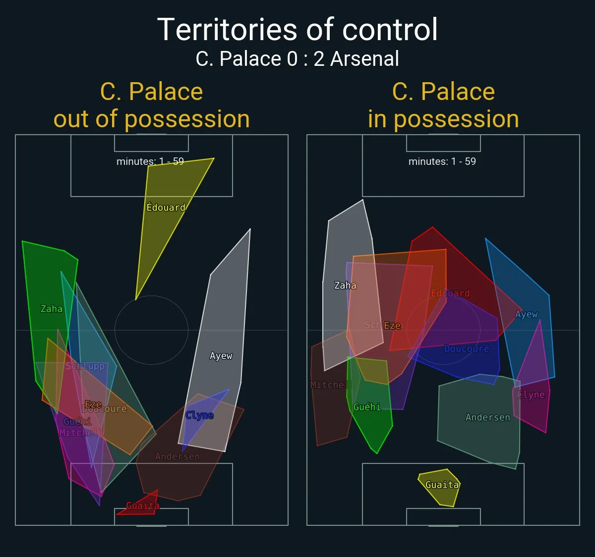 У цього рішення були й інші причини, але у схемі з "трійкою" гості мали більше кутів для передачі на фланг і більше варіантів просування через центр (де любив з'являтись Зінченко). Це провокувало агресивніший тиск Крістал Пелас в тій зоні й відкривало простір для флангових гравців (де знову ж міг бути Олекандр).