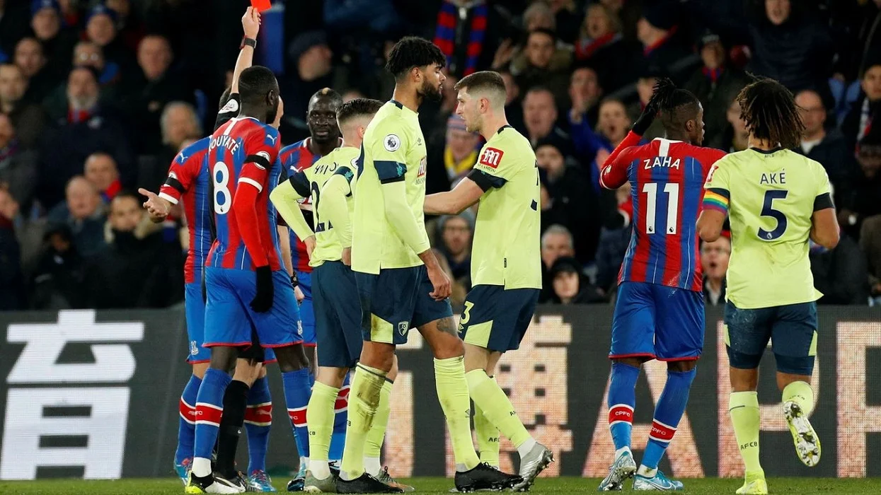 В 15-му турі чемпіонату Англії зустрічались середняки і сусіди по турнірній таблиці Крістал Пелас і Борнмут. Доволі рівний і спокійний перший тайм запам’ятався хіба що вилученням у господарів – на 19-й хвилині Мамаду Сахо побачив перед собою пряму червону картку за гру прямою ногою і залишив "орлів" у меншості.