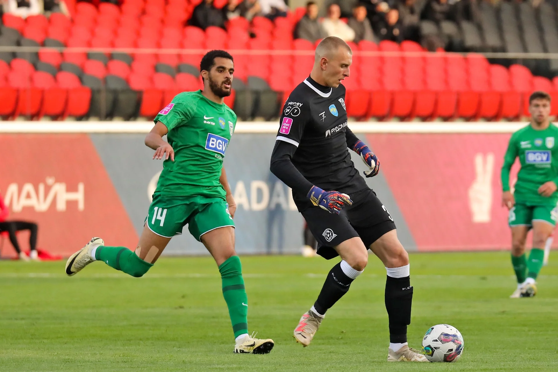 Ндукве спробував спіймати кіпера Кривбаса зненацька підступним ударом з правого флангу – той був на варті.