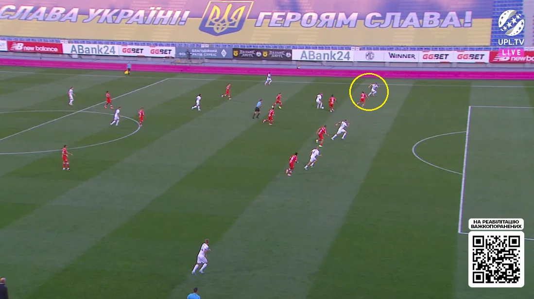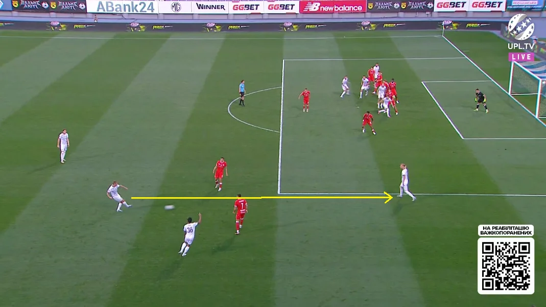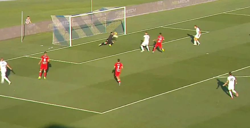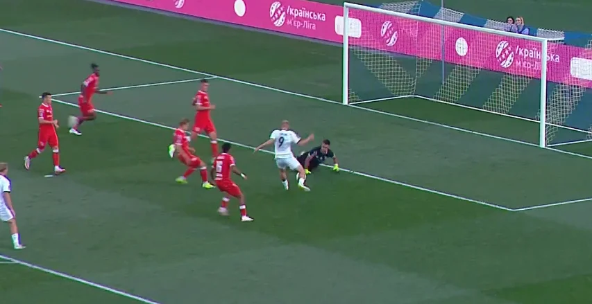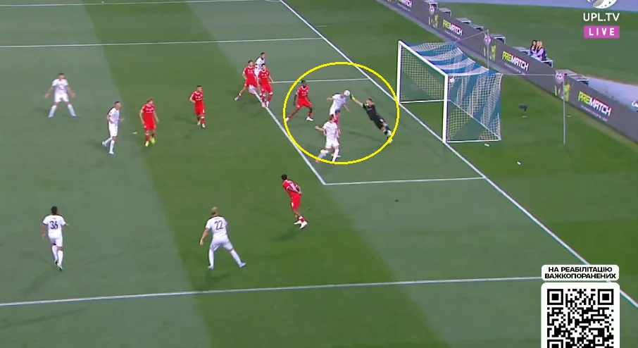 Так, вже на 18-й хвилині Башіч виконав довгу передачу, організувавши Слесару вихід віч-на-віч. Кемкіну вдалося загнати Артема у глухий кут, однак вінгер встиг скинути м'яч на лінію штрафного під удар Саленку. Роман вгатив у дальній нижній кут, але трішечки не влучив.
