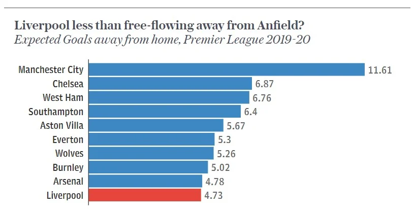 xG не є ідеально справедливим показником, але в цьому випадку підтверджує візуальне враження. За якістю створених моментів у домашніх поєдинках Ліверпуль впевнено посідає друге місце після Ман Сіті, а в гостьових – аж 10-й у лізі.