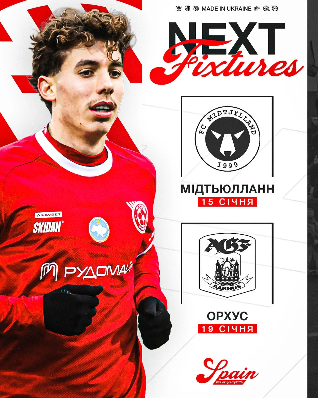 Команда Патріка ван Леувена зіграє з двома лідерами чемпіонату Данії. 15 січня криворіжці зустрінуться з Мітьюлландом, а 19 січня зійдуться з Орхусом. Інформацію щодо часу початку поєдинків та трансляцій клуб повідомить додатково.