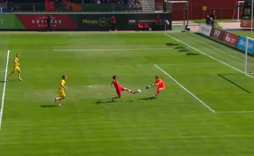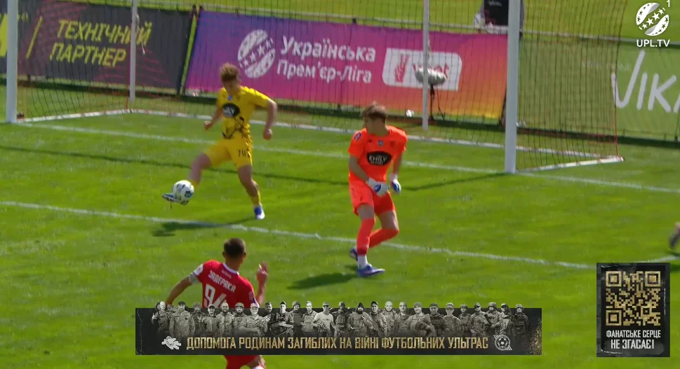 Парако отримав своєчасну передачу, але не зміг набрати швидкість. Ясінський нав'язав боротьбу, тож подальший удар нападника заблокували.