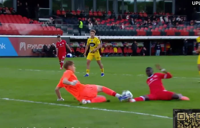 Ще за кільканадцять секунд Бойко віддав такий хороший пас назад, що Сек знову вийшов сам на сам. Клименко скоротив відстань і встиг вибити м'яч у підкаті.
