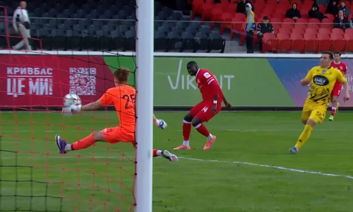 Втім, ще за дві хвилини йому довелося виймати м'яч із сітки – криворіжці заробили штрафний, а Юрчец ефектним ударом поцілив під ближню стійку. 3:0!