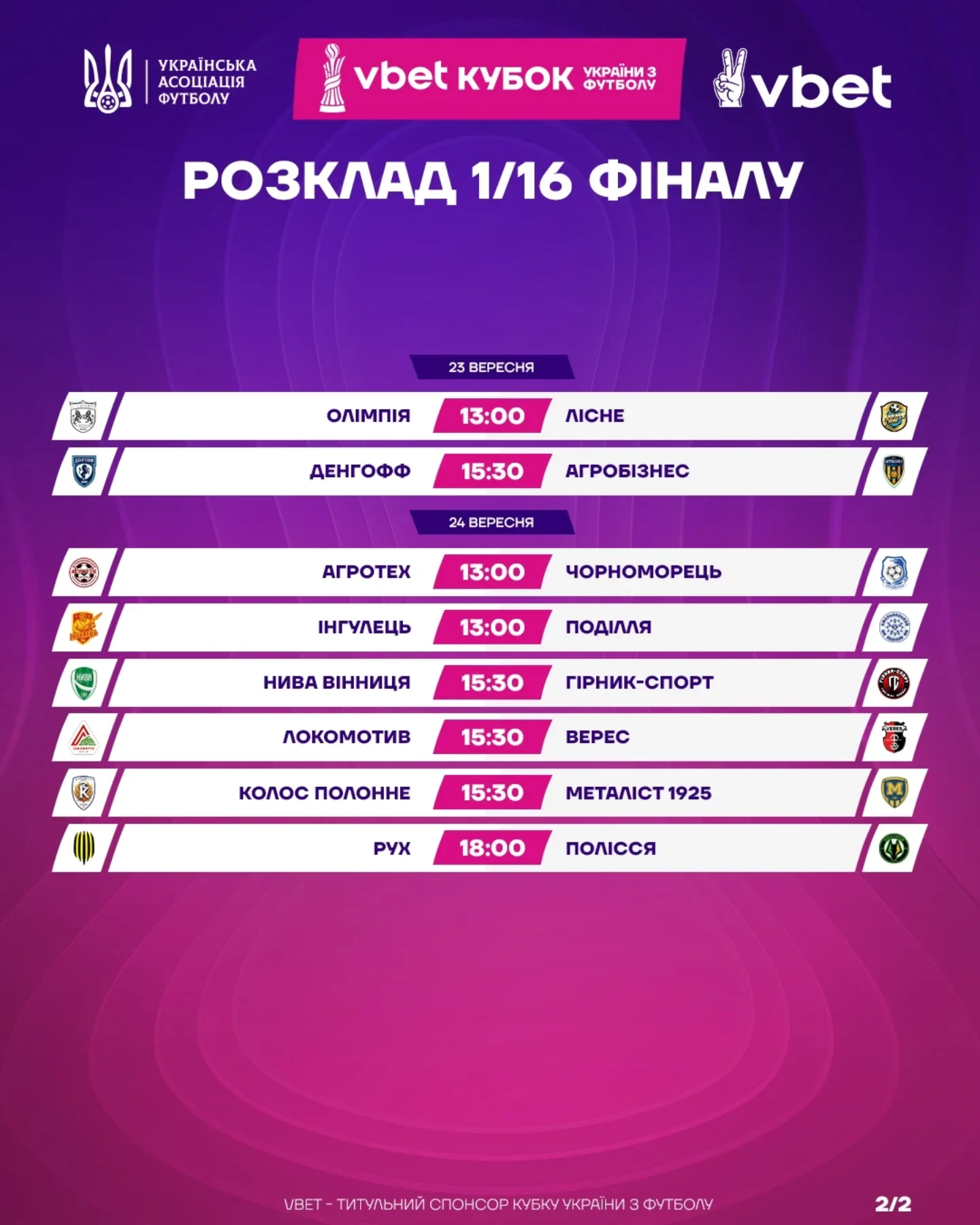 Розклад матчів 1/16 фіналу Кубка України 2025/26