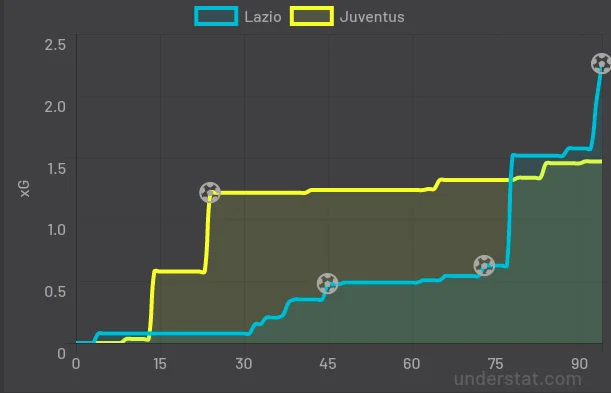 Зрештою, "зебри" награли на свій гол, який стався на 25-й хвилині – Бентанкур видав просто ідеальний пас з флангу на Кріштіану Роналду, а тому залишалось тільки підставити ногу на дальній штанзі. Захист Лаціо провалився й загалом виглядав досить невпевнено.