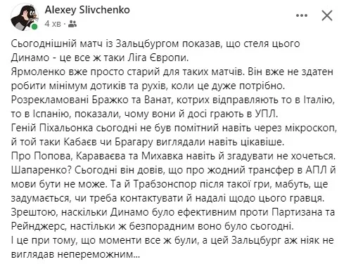 Олексій Сливченко зі Sport.ua розчарований лідерами київського клубу.