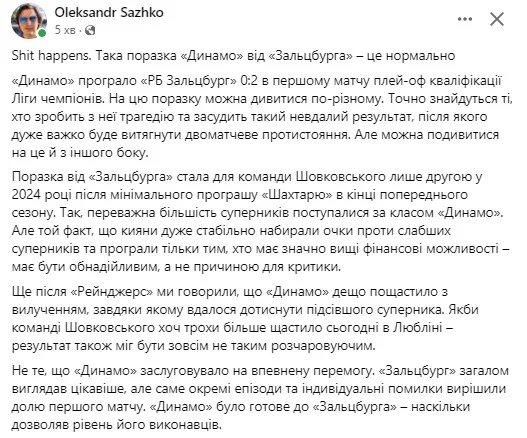 Олександр Сажко із Трибуни: "Лайно трапляється...".