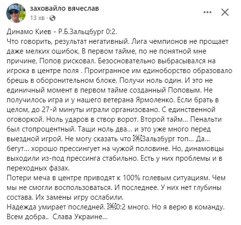 Агент, експерт і менеджер В'ячеслав Заховайло нагадує, що ЛЧ помилок не вибачає. Але при цьому він продовжує зберігати певний оптимізм.