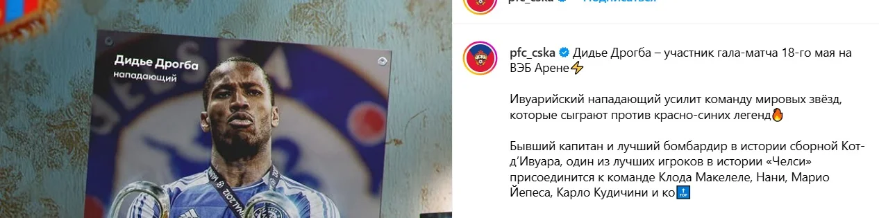 У цій огидній виставі збірна світових легенд зіграє проти "легенд" ЦСКА. Кілька справді славетних гравців погодилися приїхати на цю ганьбу. Раніше було відомо про участь Клода Макелеле, Нані, Маріо Єпеса, Карло Кудічіні, а тепер "зашкварний" список поповнив Дідьє Дрогба.